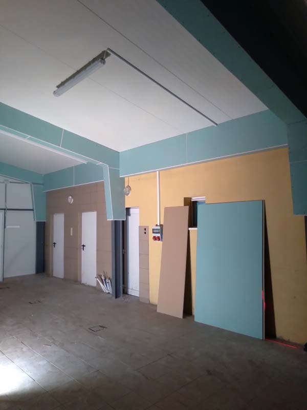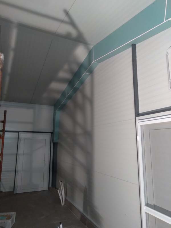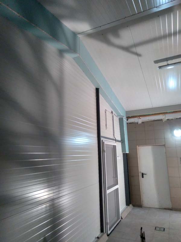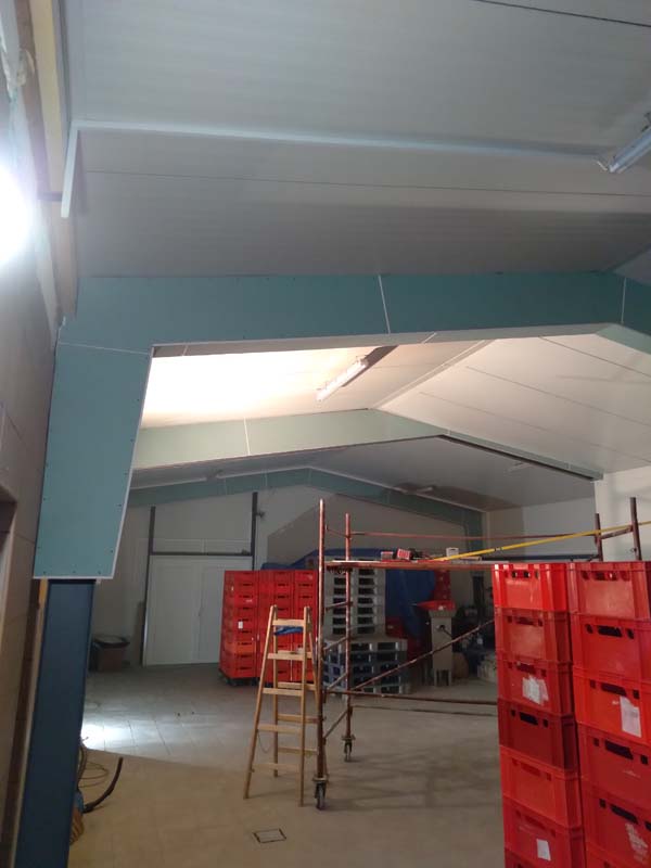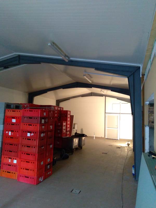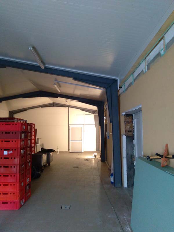 A raktár-tartószerkezet  „ I” gerendáinak eldobozolása történt. A dobozolás célja ebben az esetben az volt, hogy a szennyeződés ne tudjon könnyen megtelepedni, és a burkolat könnyen tisztítható legyen, amit a glettelés és a mosható festék felvitele biztosított. Az élelmiszerraktárban a könnyű tisztíthatóság nem csak előny, hanem előírás is!